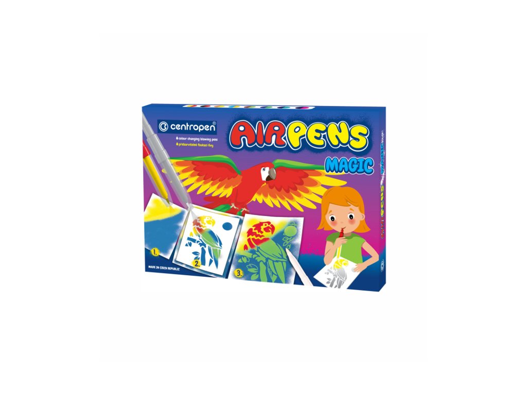 Magické fúkacie fixky na papier Centropen zdraviu neškodlivý atrament atramenty prefarbiteľné zmizíkom 8 farebných odtieňov 2 fúkací a 1 klasický zmizík 4+2 šablóny 10 hárkov A4Dodatočné parametre