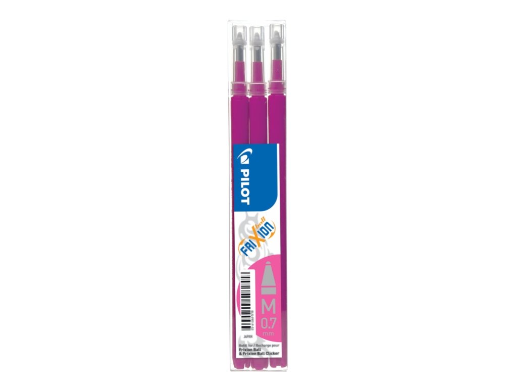 Tuha do pera Pilot FriXion Clicker a Pilot FiXion Ball. Farba: ružová. Šírka stopy: 0,7mm. Balenie obsahuje 3 tuhy.