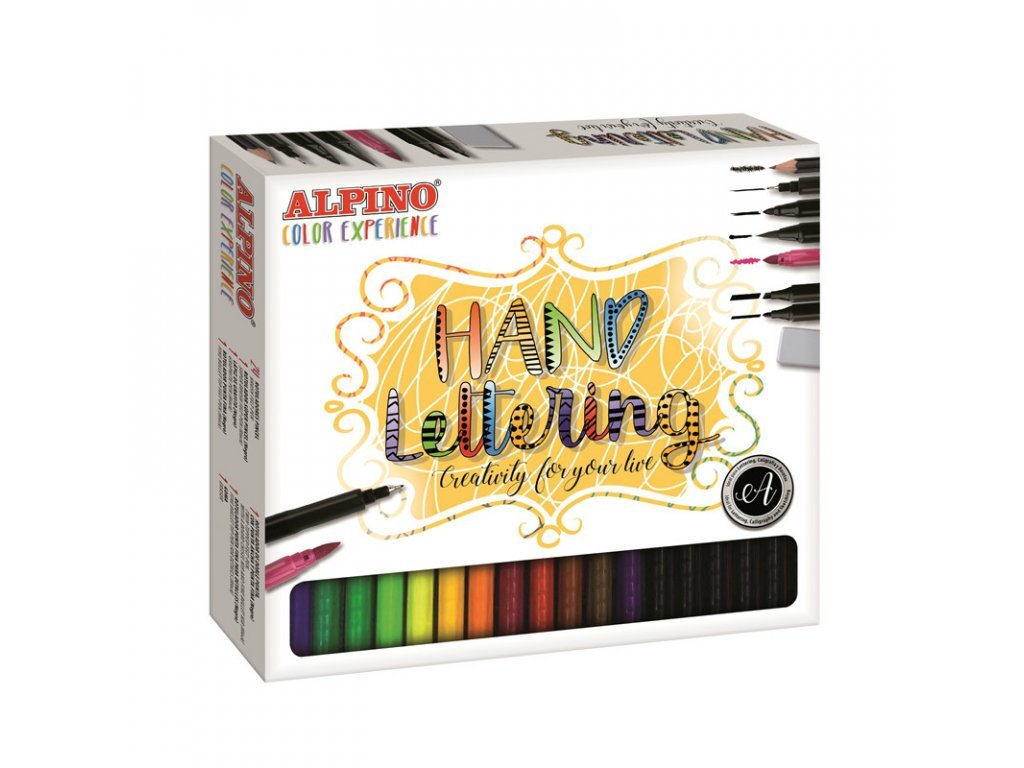 Alpino Color Experience set na ručné písmo Popis: Sada pre ručné písmo s 30 ks obsahuje: 1 pero so špičkovým štetcom, 1 pero s jemným hrotom, 1 pero s dvojitým hrotom, 1 grafitová ceruzka, 1 guma a 24 fixiek Ideálne na ručné písanie, kaligrafiu a skicovanie Upozornenie: Pre deti od 3 rokov. Obsahuje malé časti. Toto balenie si uschovajte pre budúce použitie.Dodatočné parametre