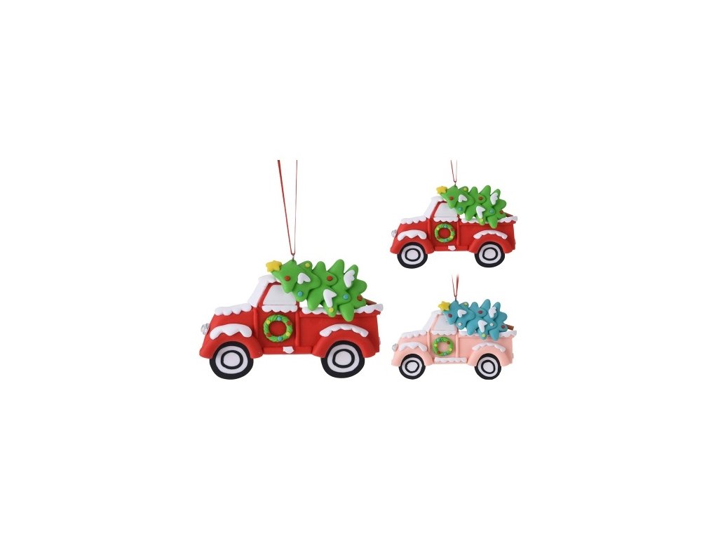 Autíčko s vianoč. stromčekom Autíčko s červenou stuhou na povesenie ako vianočná dekorácia v červenej alebo ružovej farbe. Rozmery _120x20x80 mm