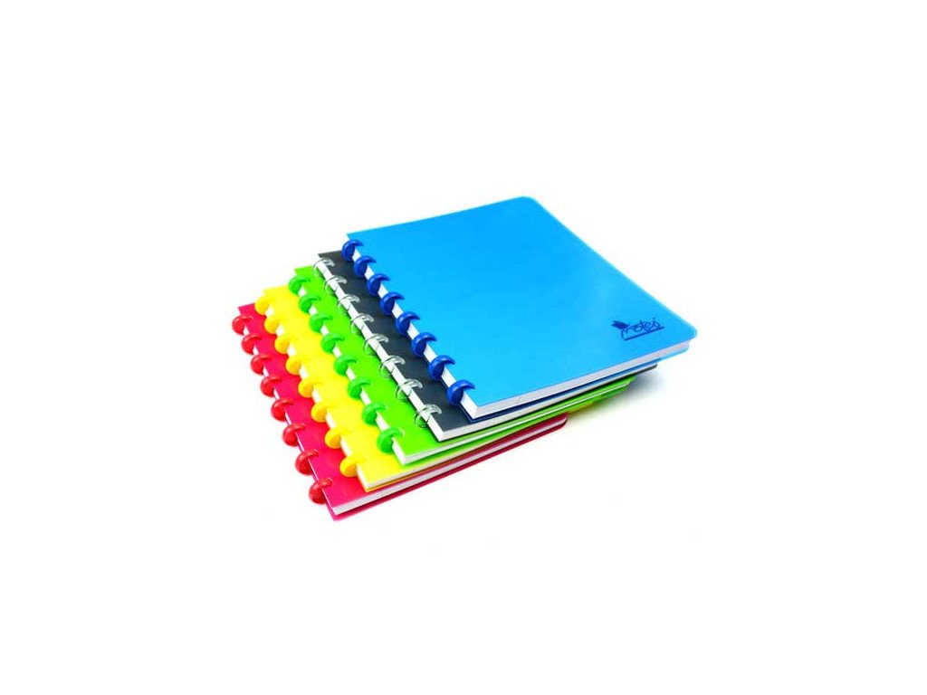 Bloky s kolieskovou väzbou, ktorá umožňuje výmenu a prekladanie listov. V bloku tak môžete mať navrchu vždy čistý list na nové poznámky. Formáty A6 (105 x 148 mm). Obálka potlačený PP 0,5 mm, vnútro bezdrevný papier 90 g, linkovaný 8 mm.Dodatočné parametre