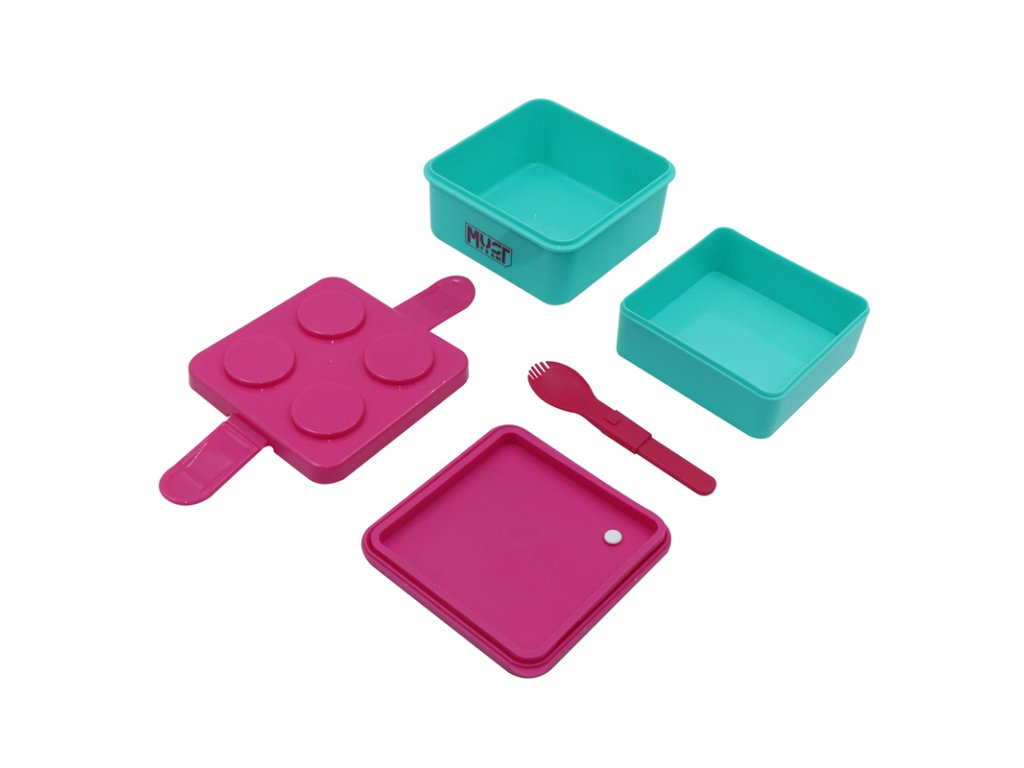 Plastový desiatový box dvojposchodový neobsahujúci BPA s lyžicou. Vhodné pre deti do školy a do škôlky. Je vhodný do mikrovlnky, do umývačky riadu a do mrazničky. Nevhodný do rúry. Rozmer: 15x15x11cm. Objem: 850+500ml.Dodatočné parametre