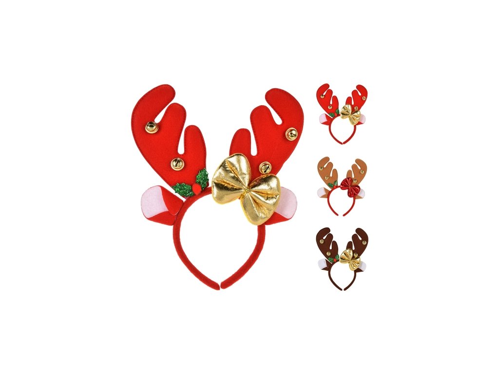 Čelenka - Vianočný sob s parohami zdobenými rolničkami a mašľou