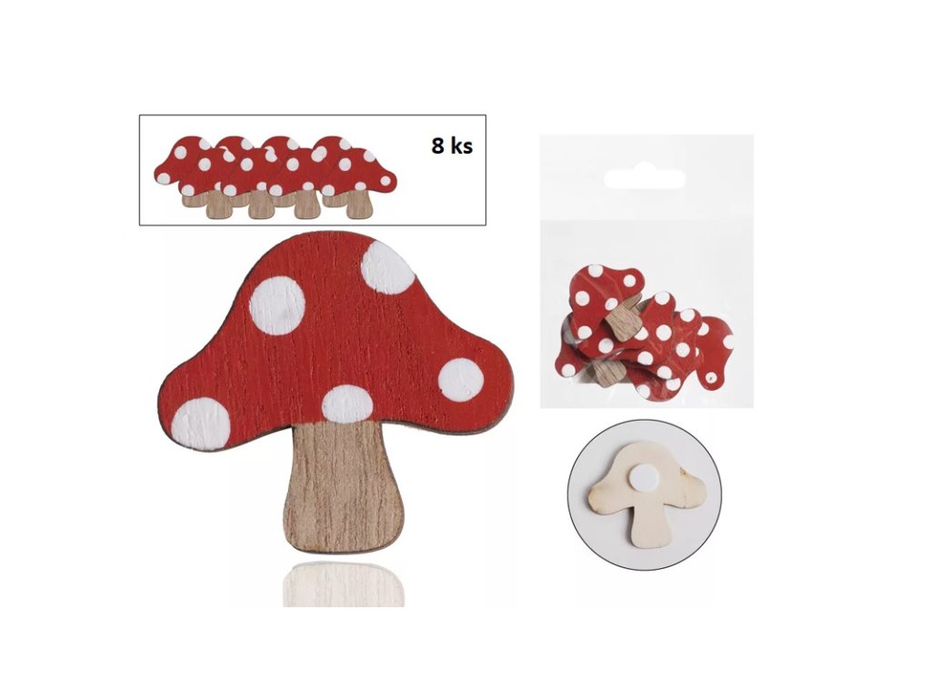 Dekor hríby drevené nalepovacie 8ks/bal. Rozmer hríbov: 4x4,2cm