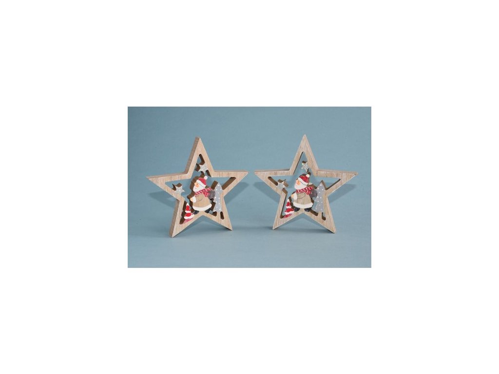 Dekorácia závesná - Hviezda drevená Santa Claus