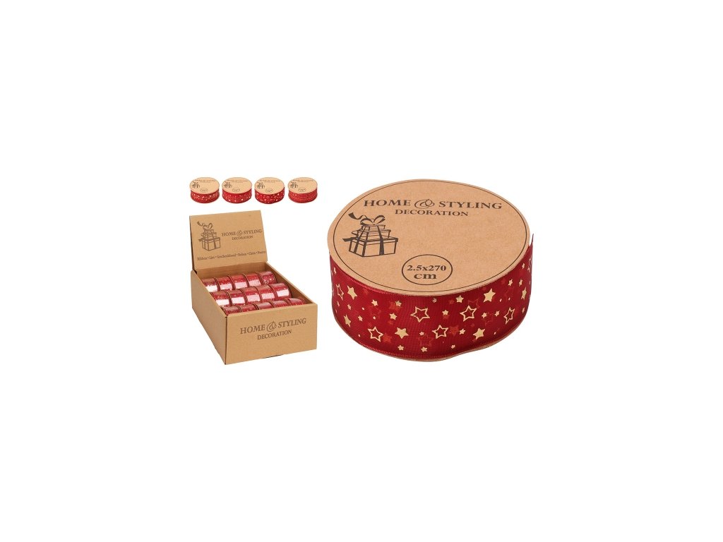 Stuhy tkané, každá so zlatou potlačou, vhodné na balenie darčekov, ako dekorácia a pod. šírka stuhy: 25 mm /návin 2,7 m farba: Červená so zlatou potlačou materiál: Polyester Balenie obsahuje 15 ks mix vzorov. Cena je za 1 kus / vzor vyberáme náhodne podľa skladovej dostupnosti.Dodatočné parametre