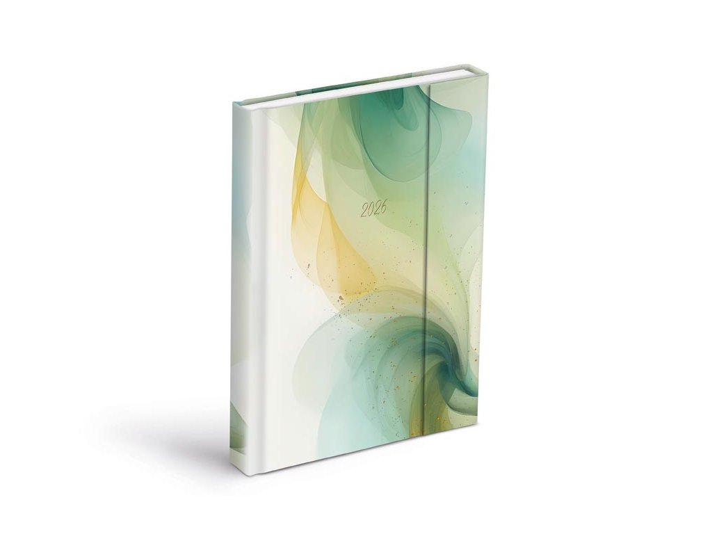 Keď sa plánovanie stane rituálom! Zahaľte svoj rok 2026 do farieb pokoja a plynulosti. Tento denný diár vo formáte A5 vás očarí abstraktným motívom pripomínajúcim jemný tanec dymu v zelenozlatých tónoch - decentný, ale neprehliadnuteľný. Vnútri vás čaká denný rozvrhnutie, ktoré vám poskytne dostatok priestoru pre poznámky, úlohy aj malé myšlienky, ktoré nechcete stratiť. Lesklý povrch obálky podčiarkuje jeho elegantný charakter a zároveň chráni vnútorný obsah pred každodenným opotrebením. Odtrhávacie spodné rožky uľahčujú rýchlu orientáciu – aktuálny deň tak vždy nájdete bez zbytočného hľadanie. Vďaka zatváraniu na magnet zostane všetko, čo si zapíšete, v bezpečí – a pritom ľahko dostupné jediným pohybom. DIÁR OBSAHUJE: - priestor pre osobné údaje - ročný prehľad roka - plánovací kalendár - štvrťročný plánovací kalendár - abecedný zoznam mien - štátne sviatky - medzinárodné sviatky - mapy - menné kalendárium - číslovanie týždňov - štátne sviatky a významné dni - východy a západy Slnka - fáza mesiaca - letný a zimný čas - znamenie - prehľad mesiaca - priestor pre poznámky a denné ciele Väzba: šitá V8 Motív: abstraktné Rozsah: 336 strán Rozmer: 140 x 205 mm Kalendárium: československé denné Povrchy a spracovanie obálky: lesklé laminoDodatočné parametre
