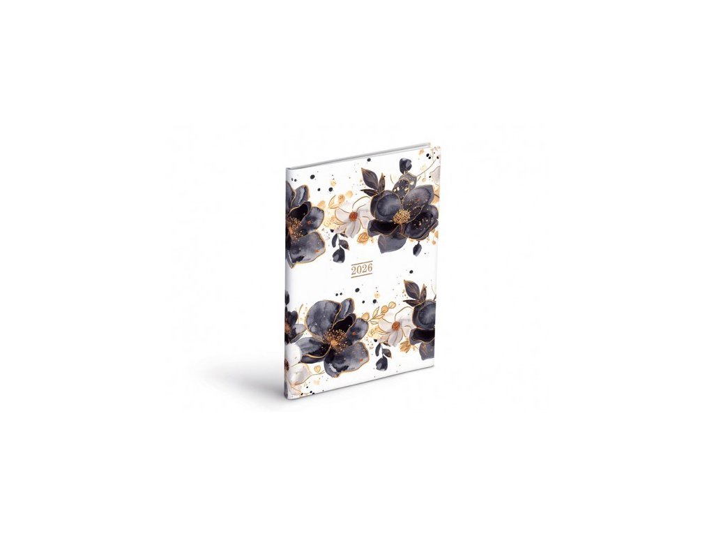 Praktický, krásny a pripravený na všetko! Týždenný diár 2026 vo formáte A5 spája výrazný kvetinový dizajn s jemnou estetikou. Čierne a zlaté kvety na čisto bielom podklade vytvárajú dojem nadčasovej elegancie, ktorá sa hodí do práce, kabelky aj na pracovný stôl. Mäkčený materiál (PU soft) dodáva obálke zamatovú hebkosť a zároveň odolnosť, ktorú oceníte pri každodennom používaní. Vnútri nájdete týždenný prehľad s dostatkom miesta pre plány, úlohy aj poznámky. Nenápadný, ale praktický detail v podobe odtrhávacích rohov vám pomôže vždy rýchlo nalistovať správny týždeň. DIÁR OBSAHUJE: - ročný prehľad roka - plánovací kalendár - štvrťročný plánovací kalendár - abecedný zoznam mien - štátne sviatky - medzinárodné sviatky - 7 strán pre poznámky - mapy - menné kalendárium - číslovanie týždňov - štátne sviatky a významné dni - východy a západy Slnko - fáza mesiaca - letná a zimná šitá V8 Rozsah: 144 strán Rozmer: 140 × 205 mm Kalendárium: československé týždenné Povrchy a spracovanie obálky: PU soft Uvedená cena je za 1 ks. Hmotnosť: 0.25 kgDodatočné parametre