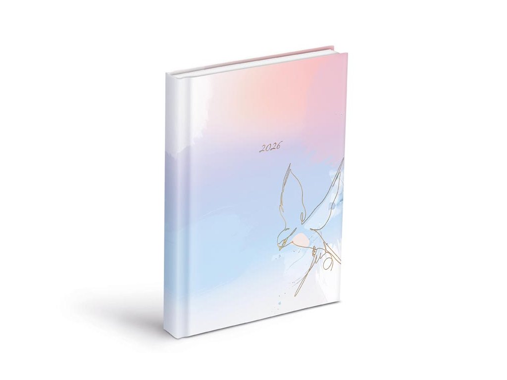 Sloboda v plánovaní! Elegantný denný diár vo formáte A5 na rok 2026 s motívom voľne letiaceho vtáka na jemnom akvarelovom pozadí prináša pocit ľahkosti a slobody do každodenného plánovania. Vďaka odtrhávacím rožkom sa ľahko dostanete k aktuálnemu dňu, bez nutnosti listovať. Obálka s lesklou lamináciou zvýrazňuje pastelové farby motívu a zároveň zaisťuje ochranu proti opotrebovaniu. Jemné pastelové tóny a čistý dizajn pôsobia pokojne a inšpiratívne – ideálne pre všetkých, ktorí chcú mať svoje dni pod kontrolou, ale zároveň si zachovať nadhľad. DIÁR OBSAHUJE: - priestor pre osobné údaje - ročný prehľad roka - plánovací kalendár - štvrťročný plánovací kalendár - abecedný zoznam mien - štátne sviatky - medzinárodné sviatky - mapy - menné kalendárium - číslovanie týždňov - štátne sviatky a významné dni - východy a západy Slnka - fáza mesiaca - letný a zimný čas - znamenie - prehľad mesiaca - priestor pre poznámky a denné ciele Motív: vták Väzba: šitá V8 Rozsah: 336 strán Rozmer: 140 x 205 mm Kalendárium: československé denné Povrchy a spracovanie obálky: lesklé laminoDodatočné parametre