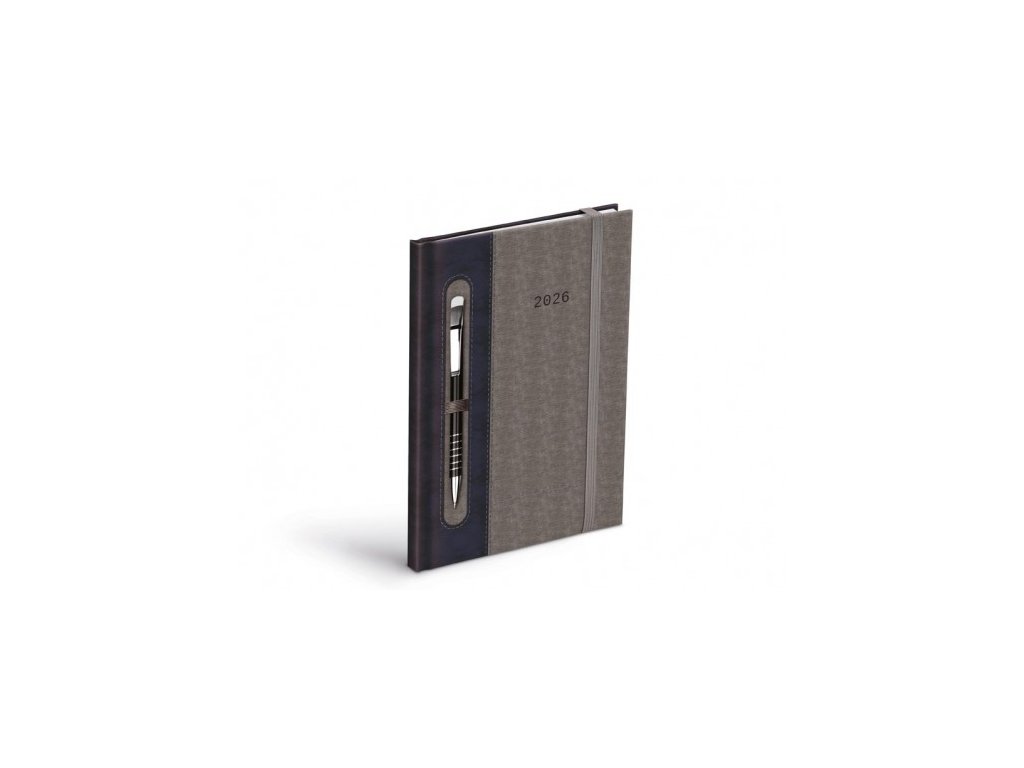 Diár 2026 T805 PU dark blue/gray - na perá s gumičkou