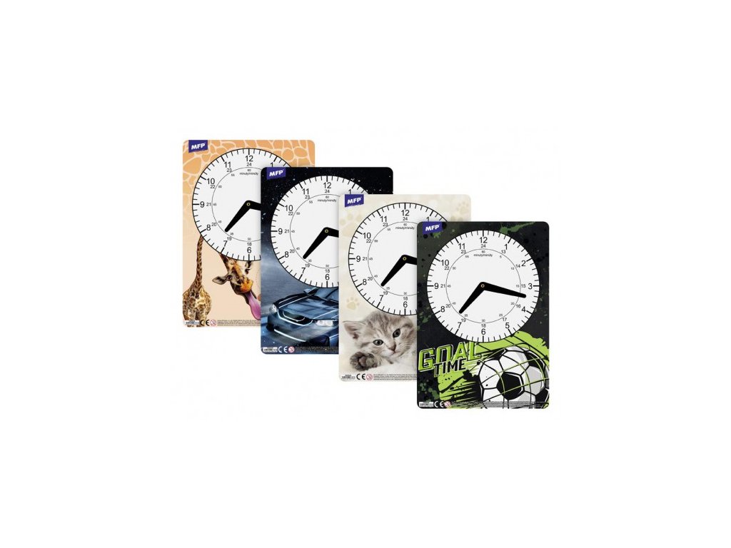 Detské papierové hodiny s obrázkom. Didaktická pomôcka dobre využiteľná k vyučovaniu času pre deti predškolského veku alebo pre prvákov. Tieto cvičné hodiny nesmú chýbať vášmu dieťaťu pri nástupe do 1. ročníka základnej školy.Dodatočné parametre