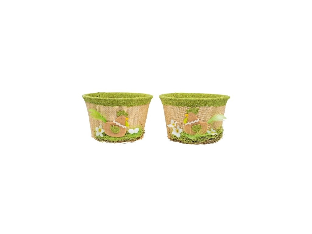 Košík veľkonočný s jutou a zeleným dekorom priemer 14 cm