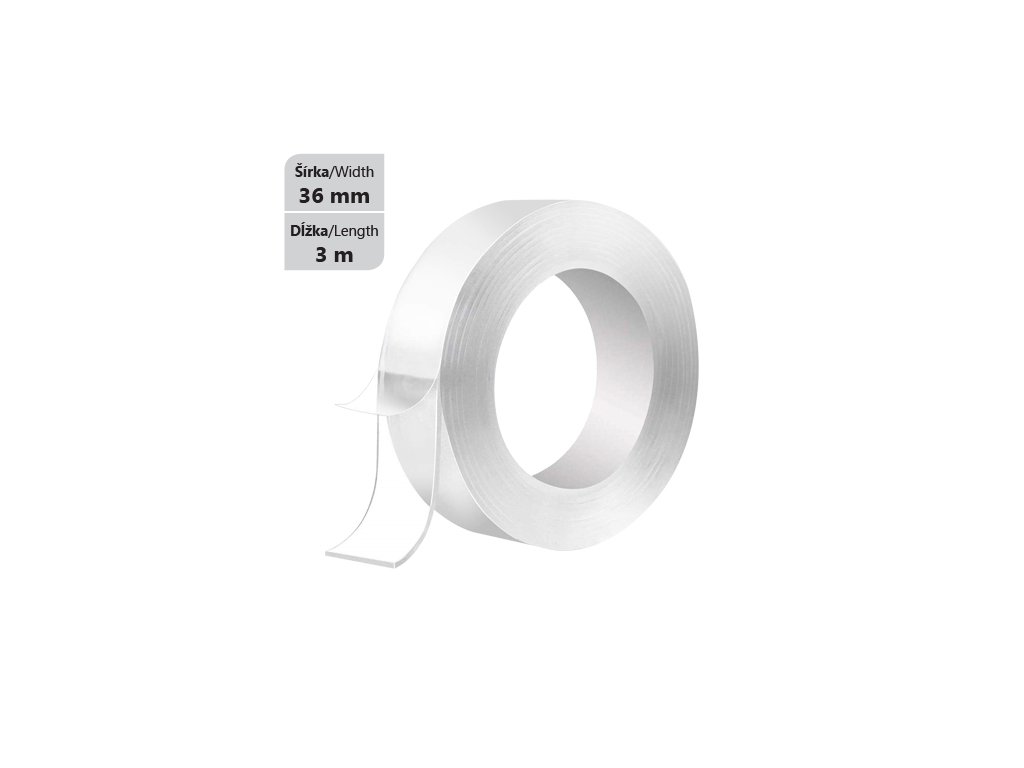 Multifunkčná obojstranná Nano priehľadná páska. Lepiaca páska je odnímateľná a znovu použiteľná bez stopy po nalepení. Páska je umývateľná, má silnú priľnavosť a dlhotrvajúcu živnosť. Návod: 1. Odrežte správnu veľkosť, ktorú potrebujete 2. Odlepte ochrannú fóliu pásky 3. Nalepte na miesto, kde ju potrebujete 4. Ak ju chcete odlepiť a znovu použiť -z myte zvyšky povrchu pásky, po vysušení je možné ju znovu použiť Ideálne povrchy pre lepnie: plast, kov, drevo, sklo, tehľa, keramika, kameň a ďalšie. Nevhodné povrhy pre lepenie: nátery na stenách, omietka, drsný povrch, mastný povrchDodatočné parametre