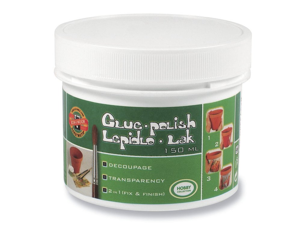 Lepidlo - lak je výrobok určený pre servítkovú techniku ( decoupage). Aplikuje sa na savé i nesavé podklady, je na vodnej báze a po zaschnutí vytvára priehľadný film.Dodatočné parametre