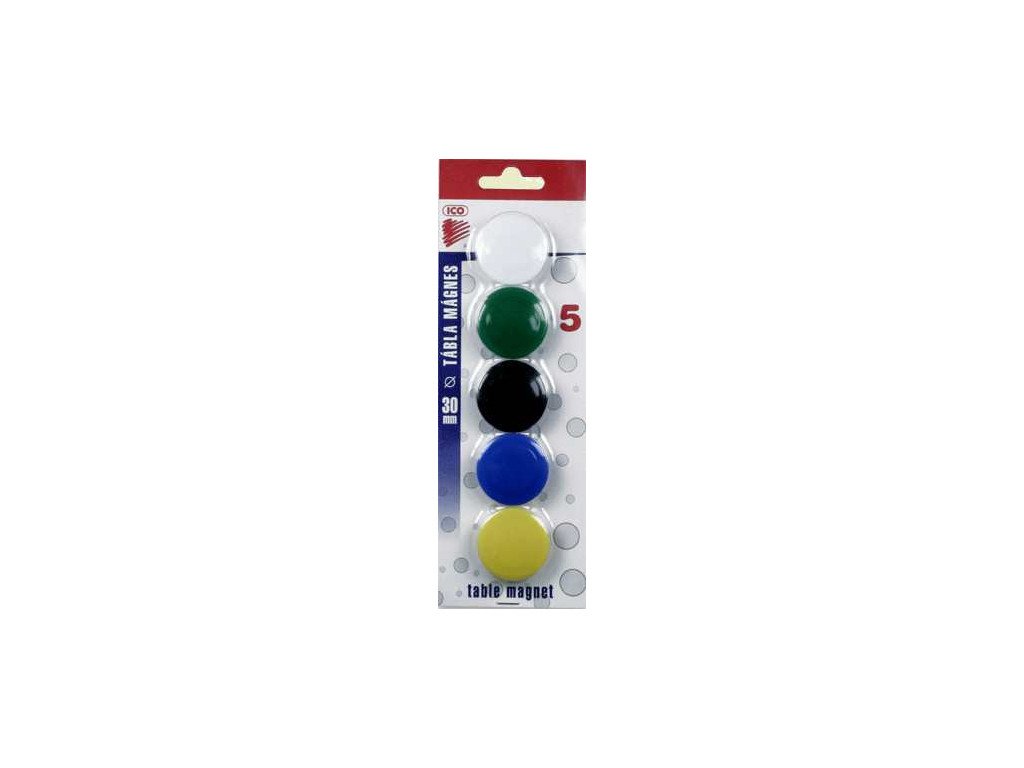 Magnety okrúhleho tvaru. Rozmer 30 mm. Blister obsahuje 5 ks. Mix farieb.