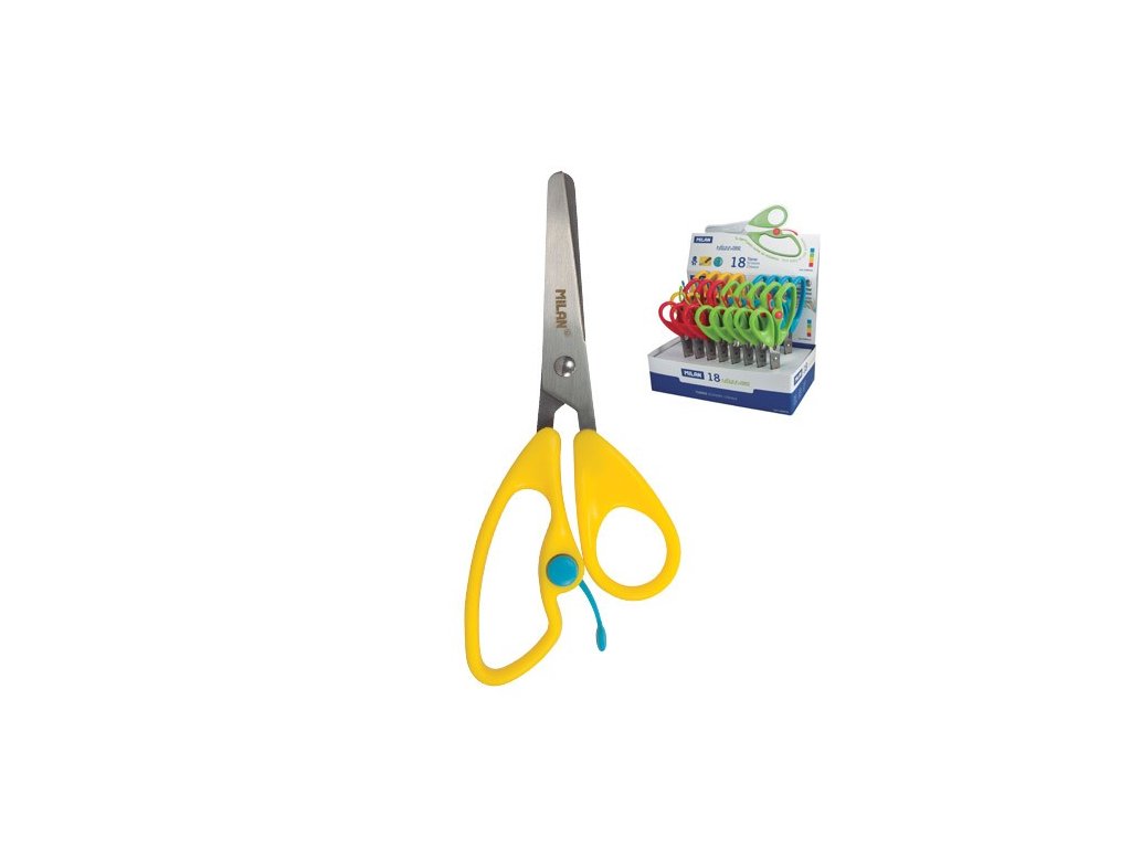 Ergonomické nožnice s plastovou rukoväťou v tvare motýľa. Dĺžka 14,4 cm s tlmičom, ktorý umožňuje "otvorenie" nožníc a zabraňuje priškripnutiu prsta dieťaťa. S čepeľou z nehrdzavejúcej ocele so zaoblenou špičkou. Ideálne pre využitie v škole. Mix farieb.Dodatočné parametre