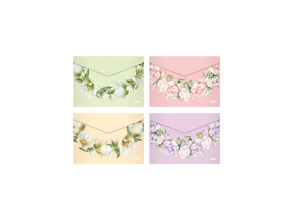 Polypropylénový (PP) zakladač uzatvárateľný na gombík - veľkosť A5 s kvetinovým motívom. Zakladač slúži ako pomocník na triedenie a ukladanie dokumentov, aby ste ich mali vždy pohromade.Dodatočné parametre