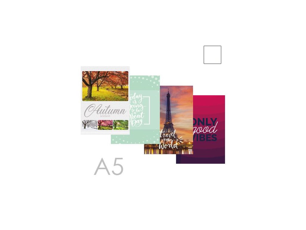 Záznamové knihy A5 sú vyrobené z bezdrevného písacieho papiera. Obálka je vyrobená z tvrdého kartóna, ktorý je potlačený rôznymi farebnými motívmi a potiahnutý laminom. (8 dizajnov). Čistá - 96 listová.Dodatočné parametre