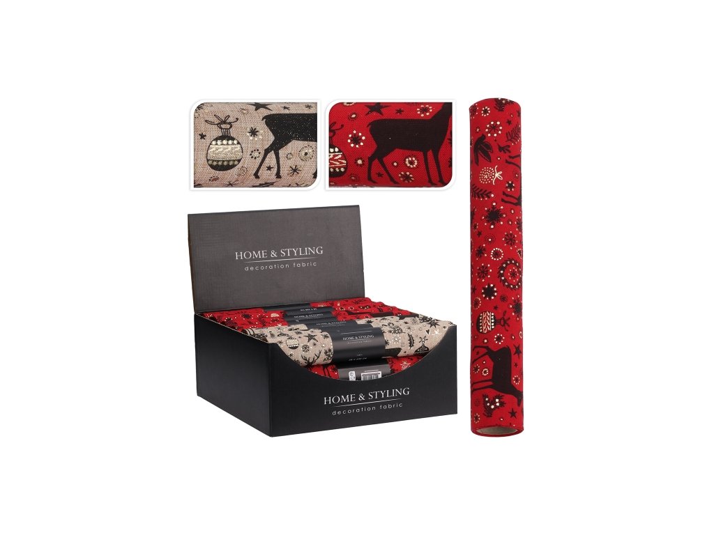 Dekoračná látka (organza, stredový pás) je vhodná na výzdobu sviatočného stola, na aranžovanie adventných vencov a pod. jemná látka: červená / béžová, prírodná potlač: čierna a zlatá šampaň farba Materiál: Polyester Cena je za 1 kus. Varianty_mix;Červená látka;Béžová látka Rozmery _28 x 200 cm (šírka role /návinDodatočné parametre
