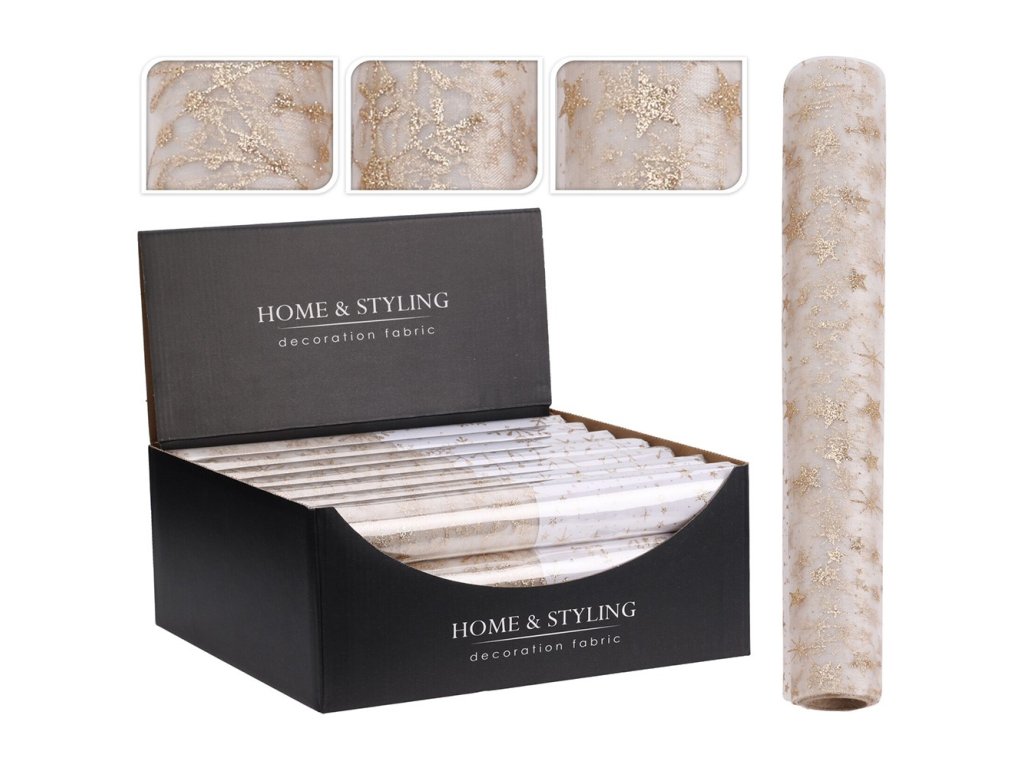 Dekoračná látka (organza, stredový pás) je vhodná na výzdobu sviatočného stola, na aranžovanie adventných vencov a pod. vzor: hviedy, bobule, snehové vločky farba: zlatá šampaň Materiál: Polyamid Cena je za 1 kus / variantu vyberáme náhodne podľa skladovej dostupnosti.Dodatočné parametre