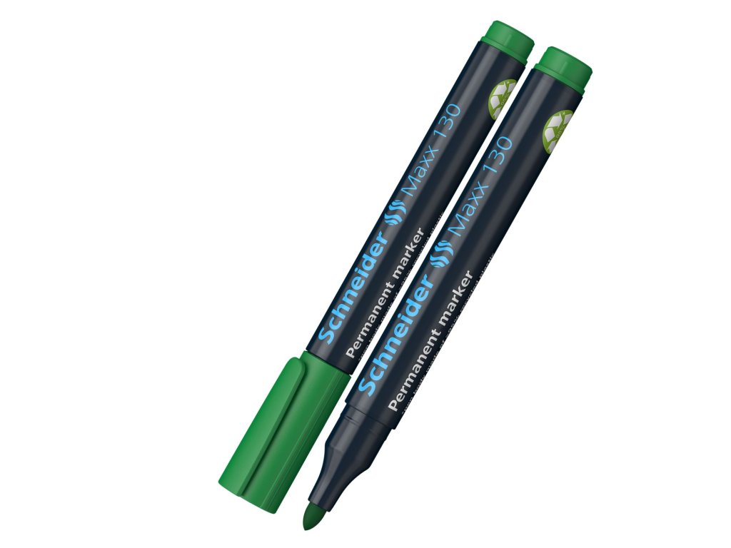 Schneider Maxx 130 je permanentný popisovač so širokým využitím na rôzne povrchy vyrobený z recyklovaných plastov 95 % vhodný na lepenku, papier, umelú hmotu, sklo, kov, betón, skaly, porcelán, keramiku a iné guľatý plstený hrot s hrúbkou čiary 1-3 mm náplň bez zápachu bez pridania látok Toluén a Xylén rýchloschnúci s intenzívnymi farbami atrament náplne nevyschne, keď necháte pero bez uzáveru po dobu 2-3 dní odolný voči vode a svetlu uzáver s praktickým klipomDodatočné parametre