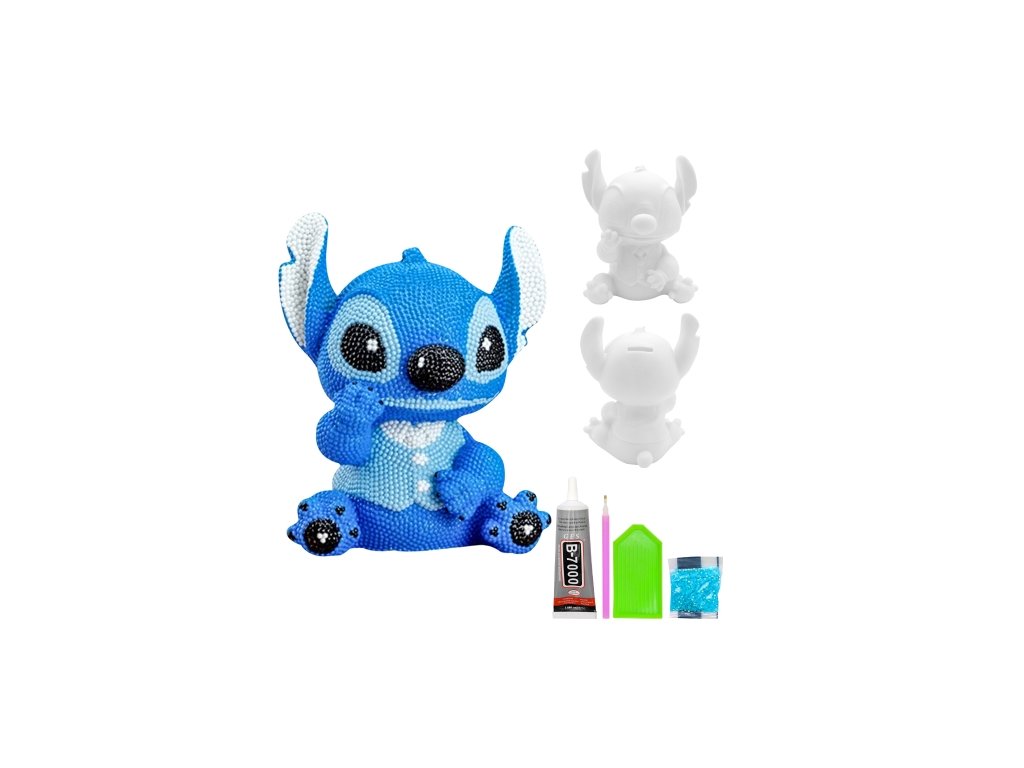 Stojaca postavička Stitch ako pokladnička na mince, ktorú si môžete oblepiť farebnými kamienkami technikou ako "diamantové maľovanie". Pokladnička má otvor na mince v zadnej časti hlavy a otočné viečko na vyberanie mincí na podstave. sada na olepenie obsahuje: obrázok ako predloha sada rôznofarebných, trblietavých AB kamienkov miska, gélový štvorec a nanášacie pero adhezívne lepidlo v tube s kovovým, tenkým hrotom B-7000 (50 ml)Dodatočné parametre