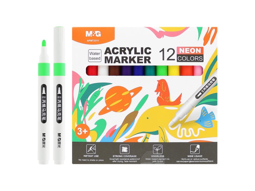 Popisovač akrylový M&G Neon - sada 12 ks