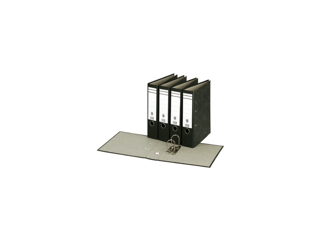 Kartónové poradače s mramorovou úpravou povrchu - vonkajší tmavý papier, vnútorný svetlý papier. Formát A4, páková mechanika, šírka chrbta 75 mm. Celopapierový obal, chrbtový otvor, radokrúžok.Dodatočné parametre