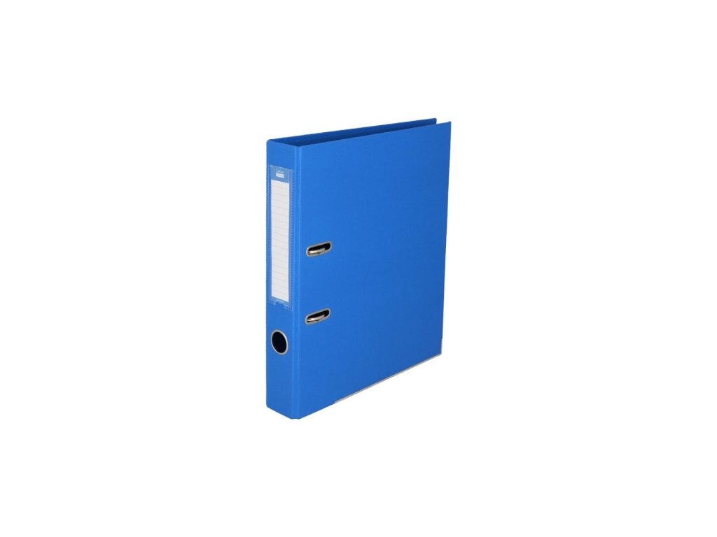 Poradač pákový Office A4 50 mm - modrý Pákový zakladač na dokumenty formátu A4. odolný vďaka laminácii s protišmykovou PP fóliou pákový mechanizmus so zariadením na pridržiavanie tlaku hrany a kruhový otvor s kovovým rámikom materiál: kartón s PP lamináciou prstokrúžok, radokrúžok šírka chrbta: 5 cm priehľadné vrecko na chrbte (vymeniteľný štítok) Rozmery _25 x 5 x 32 cm (šírka x hĺbka x výška)Dodatočné parametre