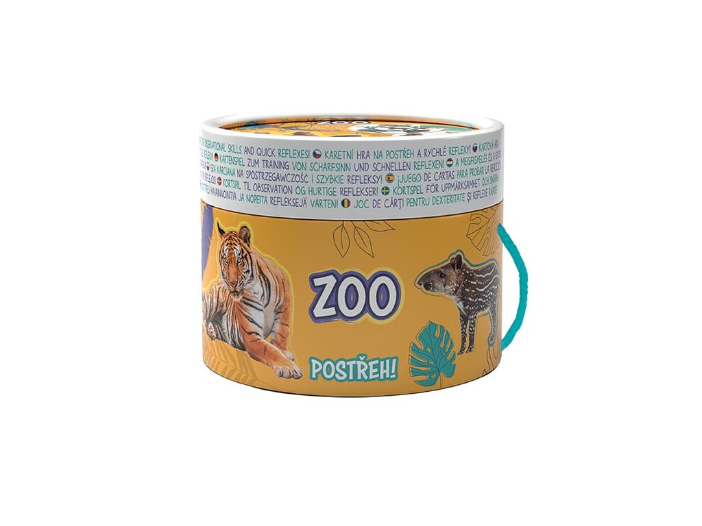 Kartová hra na postreh a rýchle reflexy obsahuje 30 farebných kartičiek na hranie v tube s obľúben ým motívom zoo a zoznamom všetkých zvierat. Súčasťou balenie sú aj pravidlá, ako si hru zahrať.Dodatočné parametre