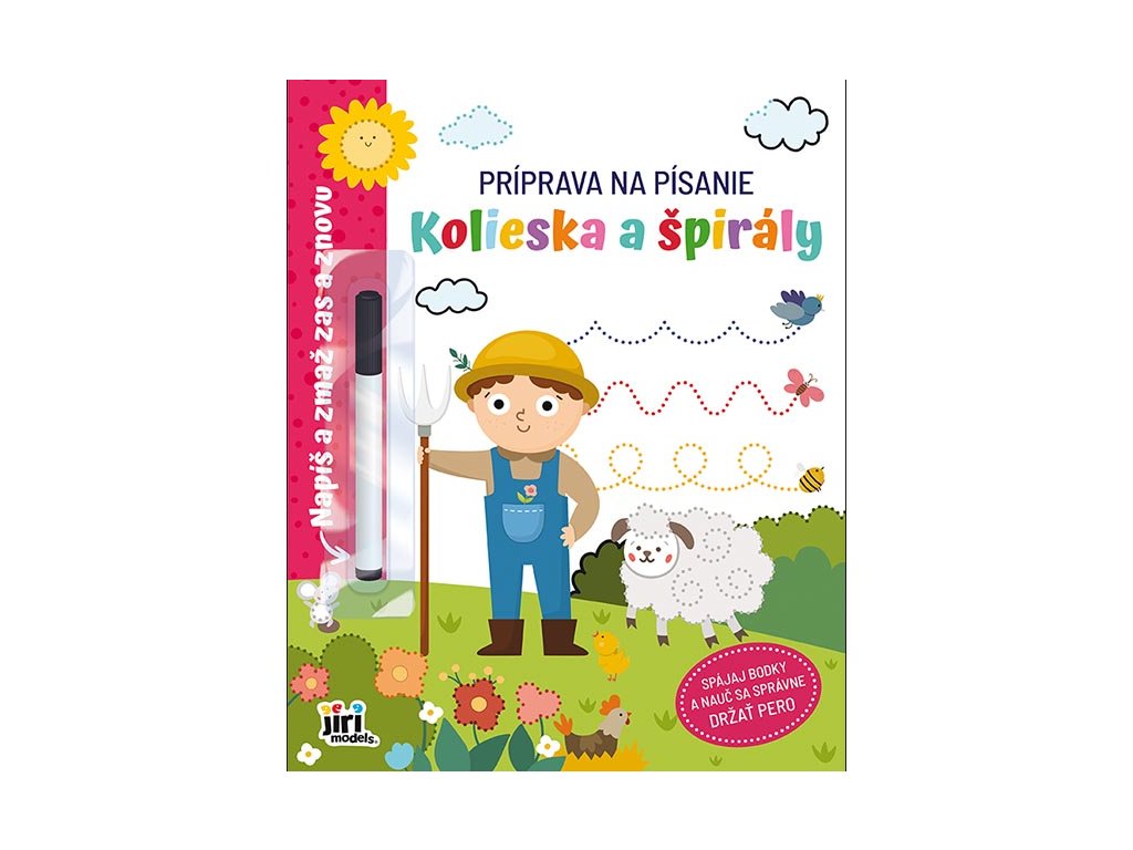 Príprava na písanie Kolieska a špirály Titul obsahuje 20 stierateľných strán plných zábavných edukačných aktivít na rozvoj jemnej motoriky a uvoľnenie ruky. Deti tak budú lepšie pripravené na písanie. Fixka je súčasťou balenia.Dodatočné parametre
