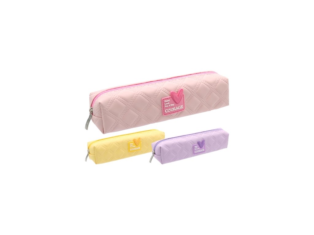 Módne puzdro pre dievčatá v pastelových farbách bezpečne uschová všetky potreby na písanie. zips s kovovým ťaháčikom pre ľahké otváranie /zatváranie nášivka "Good Luck For a Day" pastelové farby: ružová, fialová, žltá materiál: PU, vnútorná látková podšívkaDodatočné parametre