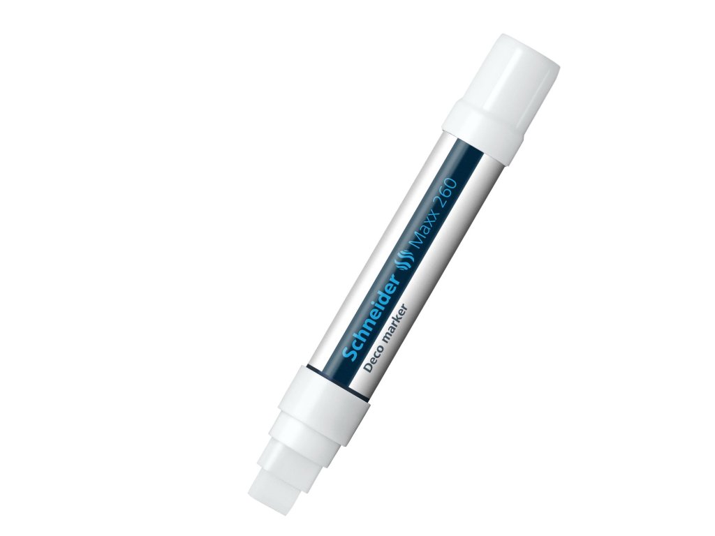 Schneider Maxx 260 je popisovač určený na popisovanie tabúľ a okenného skla vhodný na sklo, výklady a iné uzavreté hladké povrchy kvádrový hrot hrúbky 5+15 mm náplň je vyrobená na vodnej báze a je podobná tekutej kriede zotierateľný z väčšiny hladkých povrchov vlhkou handričkou môže sa použiť aj na zdrsnené alebo absorbujúce povrchy, ale už ich nemožno spätne zotrieť bez výrazného zápachuDodatočné parametre
