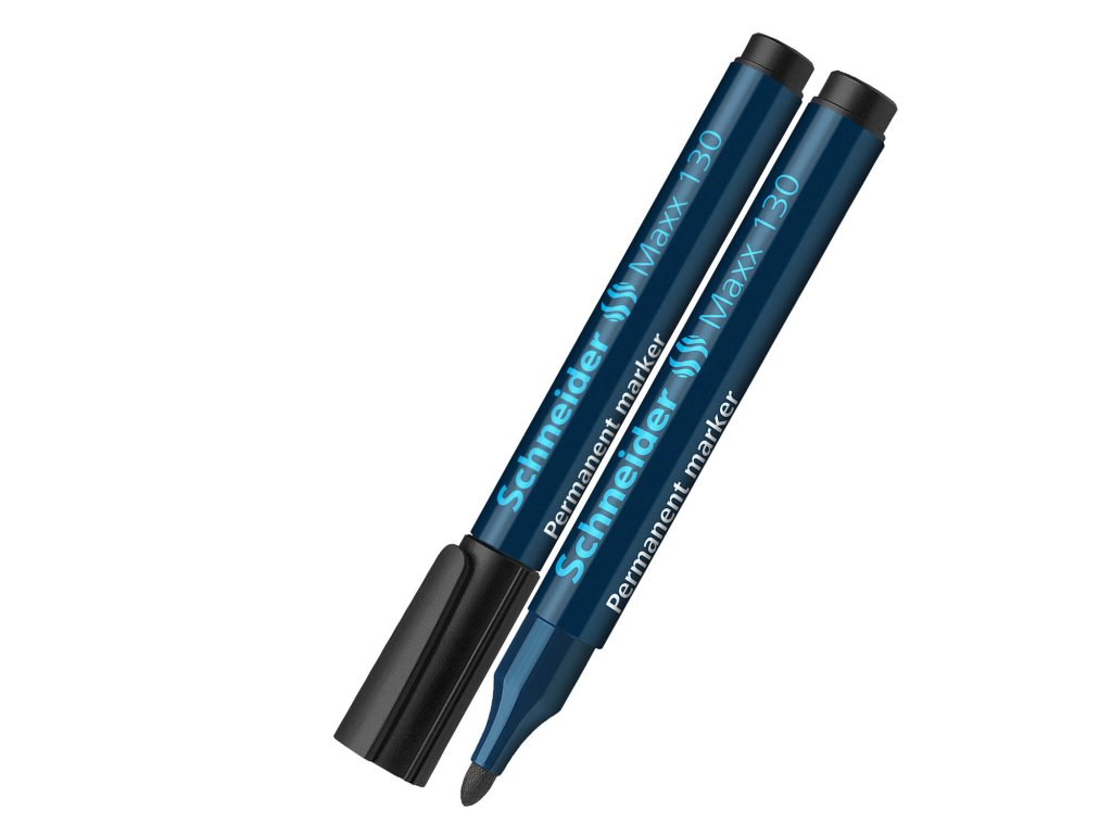 Schneider Maxx 130 je permanentný popisovač so širokým využitím na rôzne povrchy vyrobený z recyklovaných plastov 95 % vhodný na lepenku, papier, umelú hmotu, sklo, kov, betón, skaly, porcelán, keramiku a iné guľatý plstený hrot s hrúbkou čiary 1-3 mm náplň bez zápachu bez pridania látok Toluén a Xylén rýchloschnúci s intenzívnymi farbami atrament náplne nevyschne, keď necháte pero bez uzáveru po dobu 2-3 dní odolný voči vode a svetlu uzáver s praktickým klipom farba: podľa výberu farba uzáveru = farba náplneDodatočné parametre