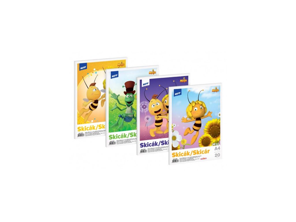 Skicár A4 20listov Včielka Maja Skicár je trhací zošit alebo blok s čistými bielymi listami (bez linajok) – Urobte si pohodovú chvíľku s deťmi a nakreslite si nejaký pekný obrázok do skicáru. POUŽITIE: K maľovaniu ako ceruzkou, pastelkami, uhlom, vodovými i temperovými farbami Titulná strana je opatrená 4 obrázkami z rozprávky Včielka MajaDodatočné parametre