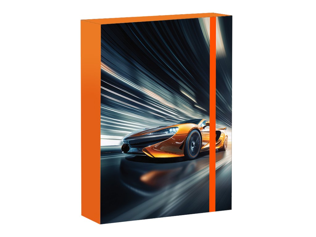 Box na zošity formát Jumbo A4, zatváranie na gumičku. Výhodou sú 3 chlopne z tvrdeného kartónu, ktoré chránia zošity a knihy proti poškodeniu. Odolný, kvalitný materiál.Dodatočné parametre