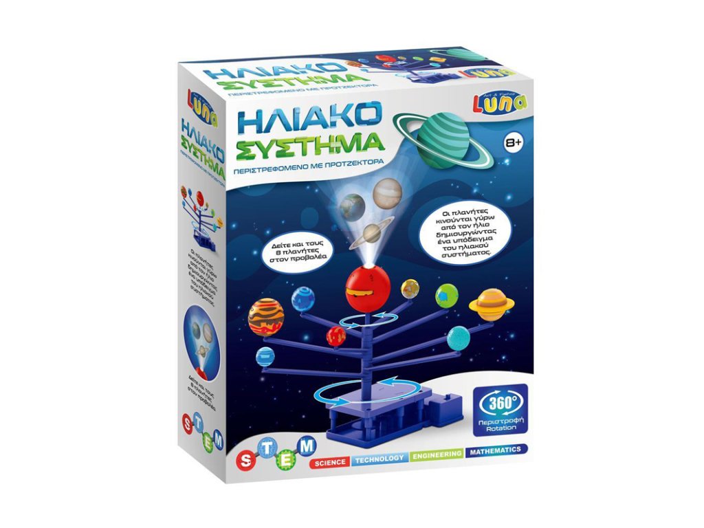 Slnečná sústava s pohyblivými planétami Sledujte ako sa planéty pohybujú okolo slnka a vytvárajú model našej slnečnej sústavy. Premeňte sa na malého konštruktéra a zostavte si 3D model slnečnej sústavy! Takáto hra rozvíja kreativitu, učí a podnecuje predstavivosť. Naša slnečná sústava je nesmierne zaujímavá, vaše dieťa sa prostredníctvom hry môže naučiť veľa o našom vesmíre. Povzbudí ho to k skúmaniu tajomstiev vesmíru a pomôže mu to s planétami v našej sústave. Súprava obsahuje: planéty slnečnej sústavy, podstavec so stojanom, funkcia projekcie planét. Batérie 3x 1,5V AG 3 sú súčasťou balenia. Batérie 2x 1,5V AA nie sú súčasťou balenia. Rozmery balenia: 21x7,5x24,5 cm Súprava je vhodná pre deti staršie ako 8 rokov.Dodatočné parametre