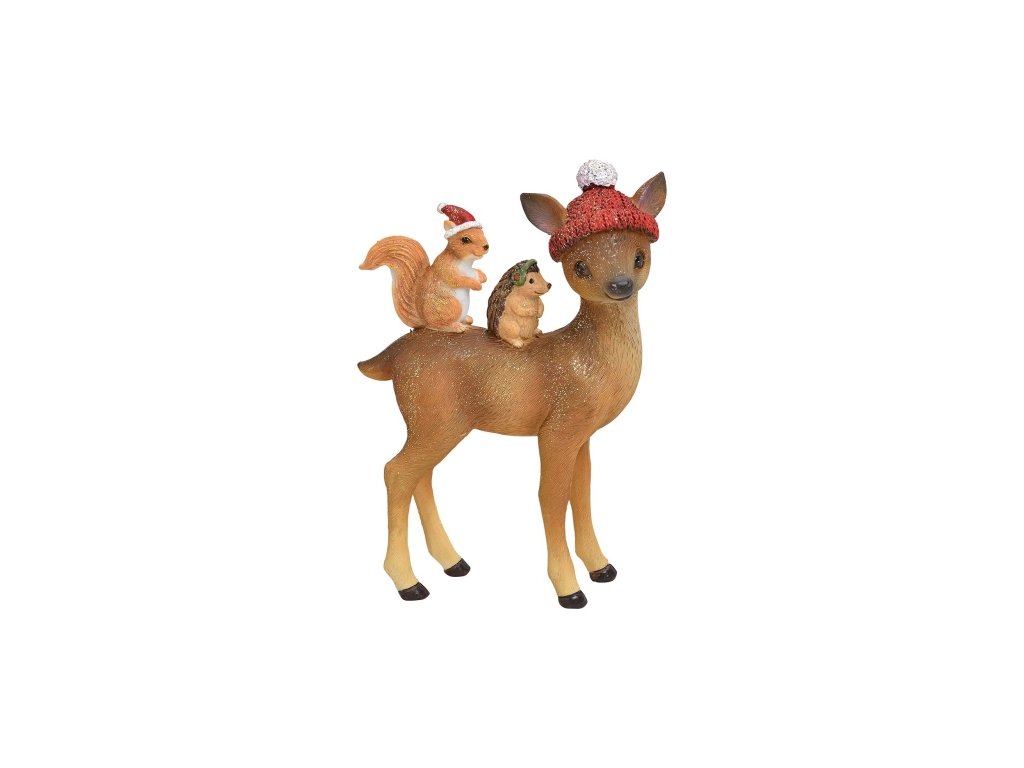Soška srna stojaca so zvieratkami 10x4x15 cm
