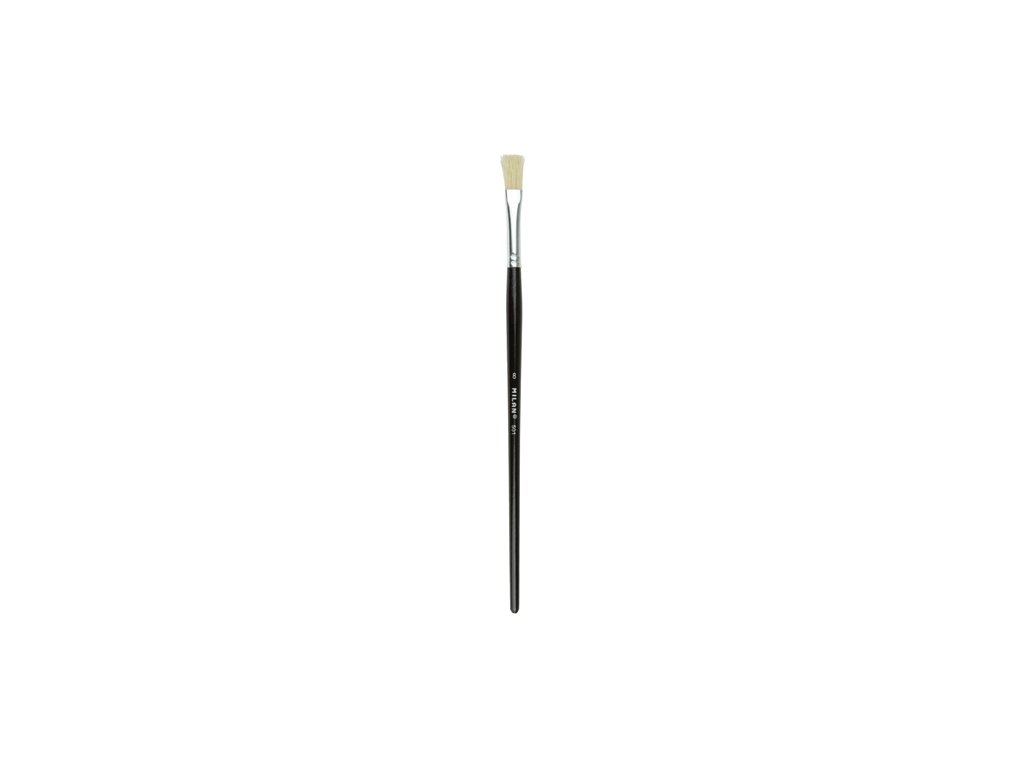 Plochý štetec č. 8 z prírodných prasačích štetín, s čiernou lakovanou rukoväťou z dreva so strieborným bezošvým kovaním, je vďaka odolnosti a pevnosti vlasu vhodný na viacúčelové použitie. Určený pre maľovanie na najrôznejšie povrchy a druhy techník, pri ručných prácach a dekoráciách pre umelecké farby s rôznou textúrou. Dĺžka vlasu 17,7mm, šírka 9,6mm, hrúbka 3,5mm.Dodatočné parametre