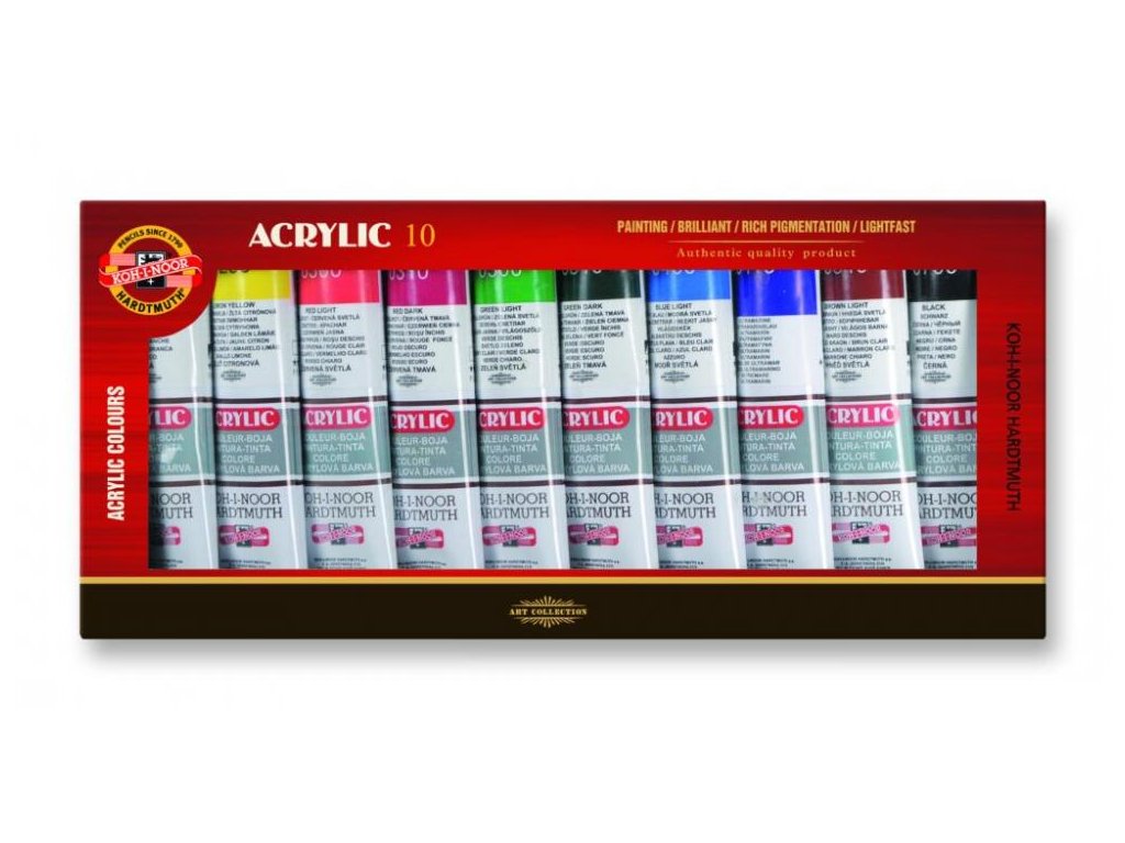 Akrylové farby sú vodou riediteľné disperzné farby vysokej kvality. Môže sa nanášať štetcom, valčekom alebo špachtľou na akýkoľvek nemastný podklad. Farby sa vyznačujú vysokým obsahom pigmentu a stálosťou farieb. Po zaschnutí vytvorí pružný vodeodolný povlak. Ďalšou výhodou farieb je vzájomná miešateľnosť a krátka doba schnutia.Dodatočné parametre
