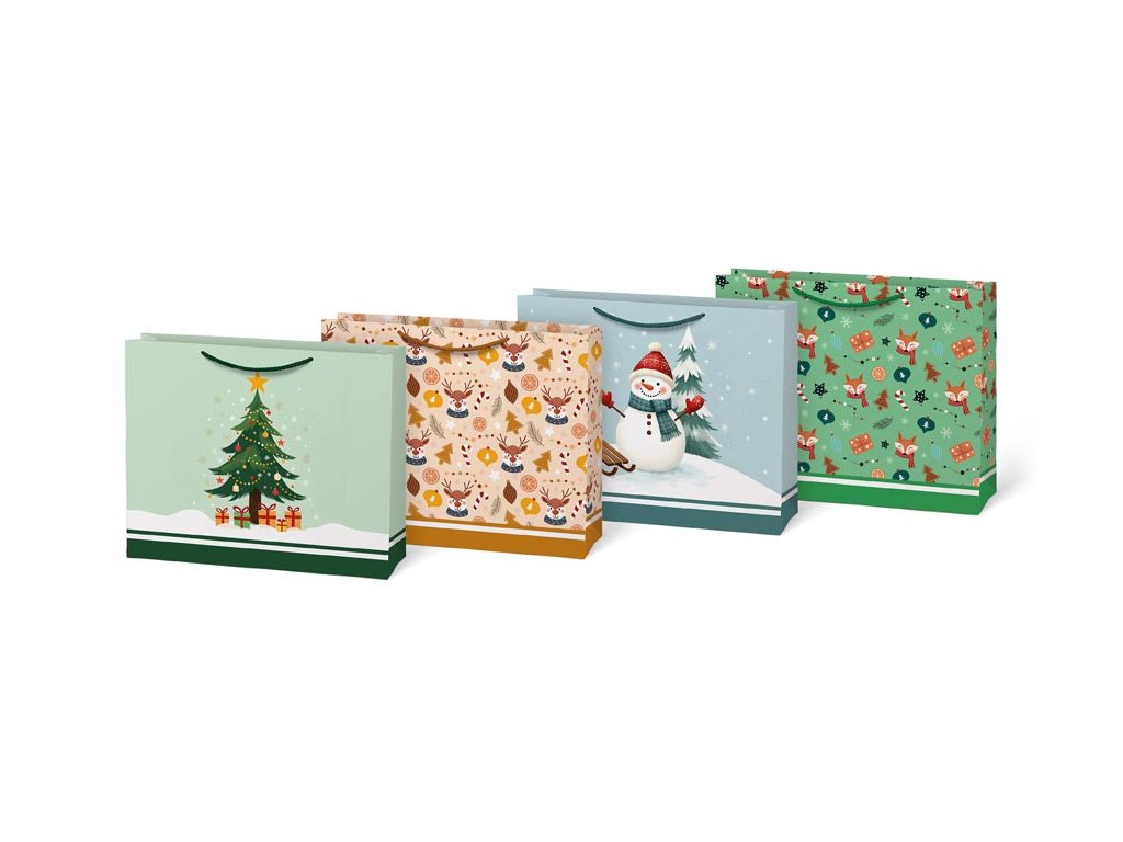 Vianočná darčeková taška MFP T8 – ideálna na väčšie prekvapenie Krásna papierová taška s vianočnými motívmi je perfektným riešením na balenie objemnejších darčekov. Snehuliak, vianočný stromček, sobíci či hravé sviatočné vzory vyčaria úsmev už pri samotnom odovzdávaní. Vďaka veľkorysým rozmerom do nej ľahko uložíte knihy, textil, hračky alebo iné väčšie darčeky. Motív: vianočný Rozmery: 325 × 265 × 135 mm Dodávame v mixe 4 motívov a farieb podľa aktuálnej skladovej dostupnosti. Uvedená cena je za 1 ks.Dodatočné parametre