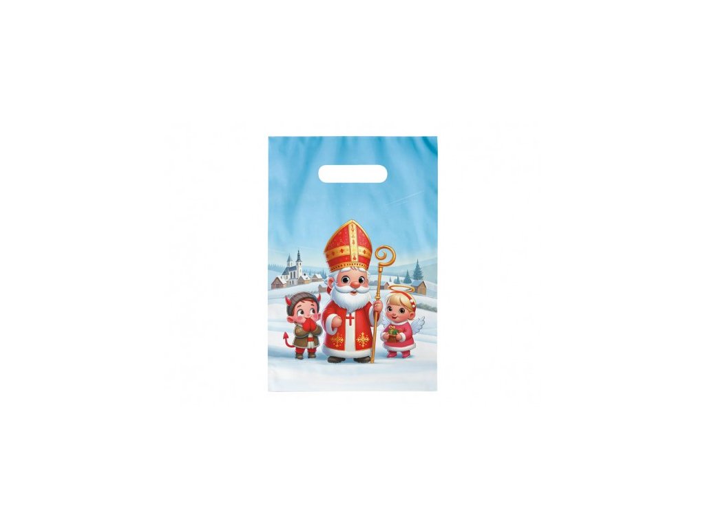 Krásne balenie pre sviatočné prekvapenie! Vneste do sviatočného obdobia čaro tradičnej mikulášskej nádielky s originálnou mikulášskou darčekovou taškou, ktorá poteší malých aj veľkých. Tento veselý motív Mikuláša, anjela a čertíka na zasneženom pozadí pod hviezdnou oblohou rozžiari každý balíček a dodá mu tú pravú sviatočnú atmosféru. Taška je ideálna na balenie sladkostí, ovocia alebo malých darčekov. Vďaka praktickému prierazu sa jednoducho prenáša a skvelo poslúži pri mikulášskej nádielke doma aj v školských kolektívoch. Materiál: PE Rozmer: 200 × 300 × 80 mmDodatočné parametre