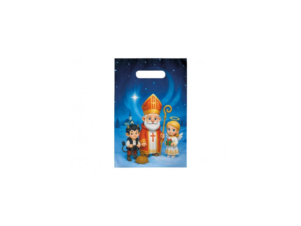 Krásne balenie pre sviatočné prekvapenie! Vneste do sviatočného obdobia čaro tradičnej mikulášskej nádielky s originálnou mikulášskou darčekovou taškou, ktorá poteší malých aj veľkých. Tento veselý motív Mikuláša, anjela a čertíka na zasneženom pozadí pod hviezdnou oblohou rozžiari každý balíček a dodá mu tú pravú sviatočnú atmosféru. Taška je ideálna na balenie sladkostí, ovocia alebo malých darčekov. Vďaka praktickému prierazu sa jednoducho prenáša a skvelo poslúži pri mikulášskej nádielke doma aj v školských kolektívoch. Materiál: PE Rozmer: 200 × 300 × 80 mmDodatočné parametre