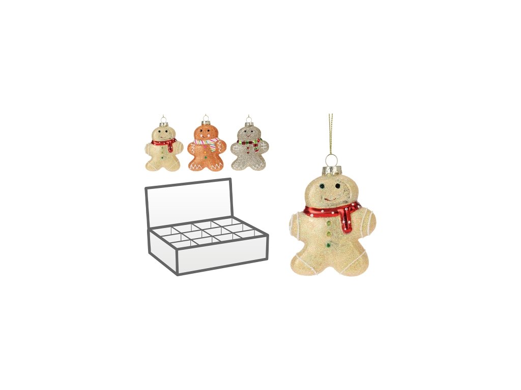 Vianočná sklenená ozdoba Perník 11 cm - 3 farebné prevedenia Vianočná ozdoba na zavesenie - perník v 3 farebných prevedeniach. Farby: zlatá šampaň, zlatá trblietavá, hnedá Cena je za 1 kus. Hmotnosť: Materiál: skloDodatočné parametre