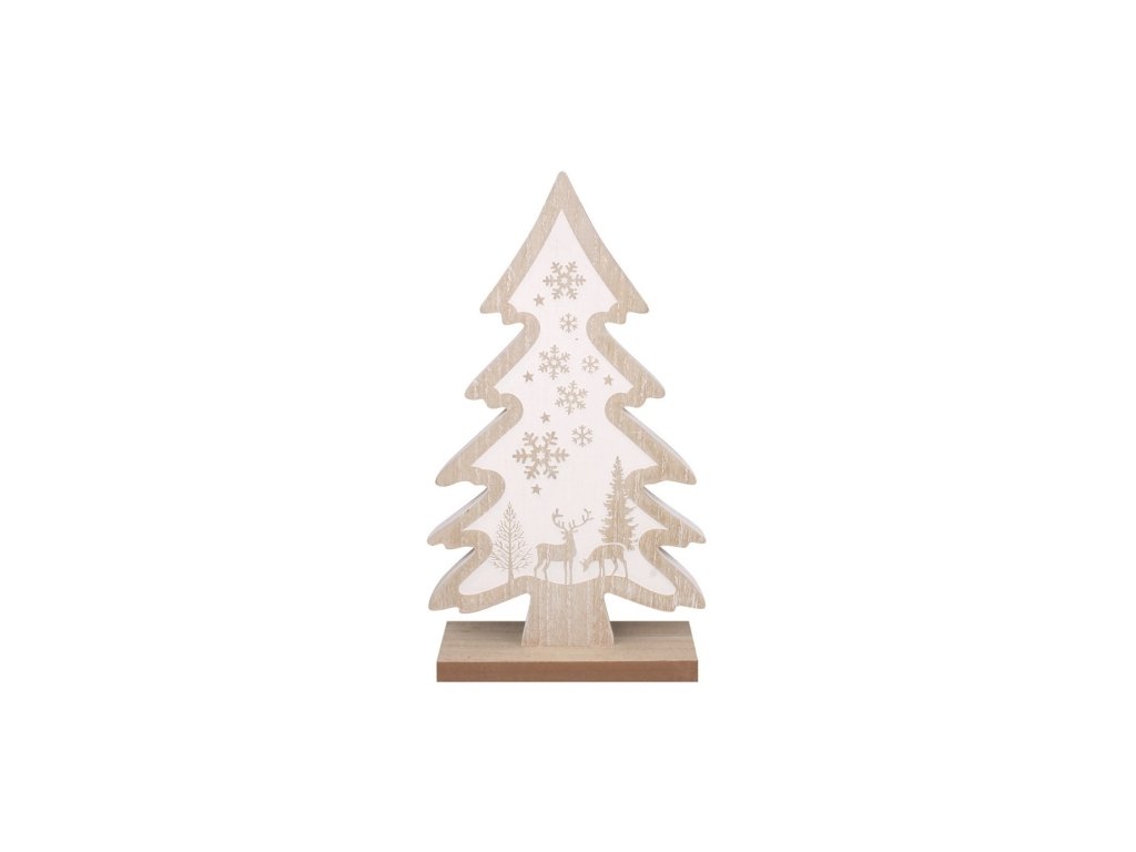 Vianočný strom s bielou potlačou drevený na postavenie