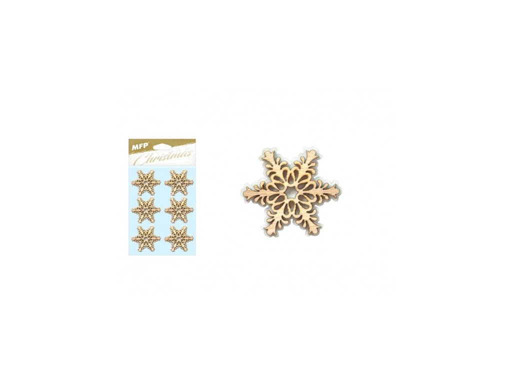 Vianočné, drevené ozdoby snehové vločky so samolepkou. Ozdoba je opatrená samolepkou, takže sa dá ľahko pripevniť kamkoľvek. Je ideálna na ozdobenie darčeka, pohľadnice alebo darčekovej tašky. OBSAH BALENIA: - 6 ks snehových vločiekDodatočné parametre