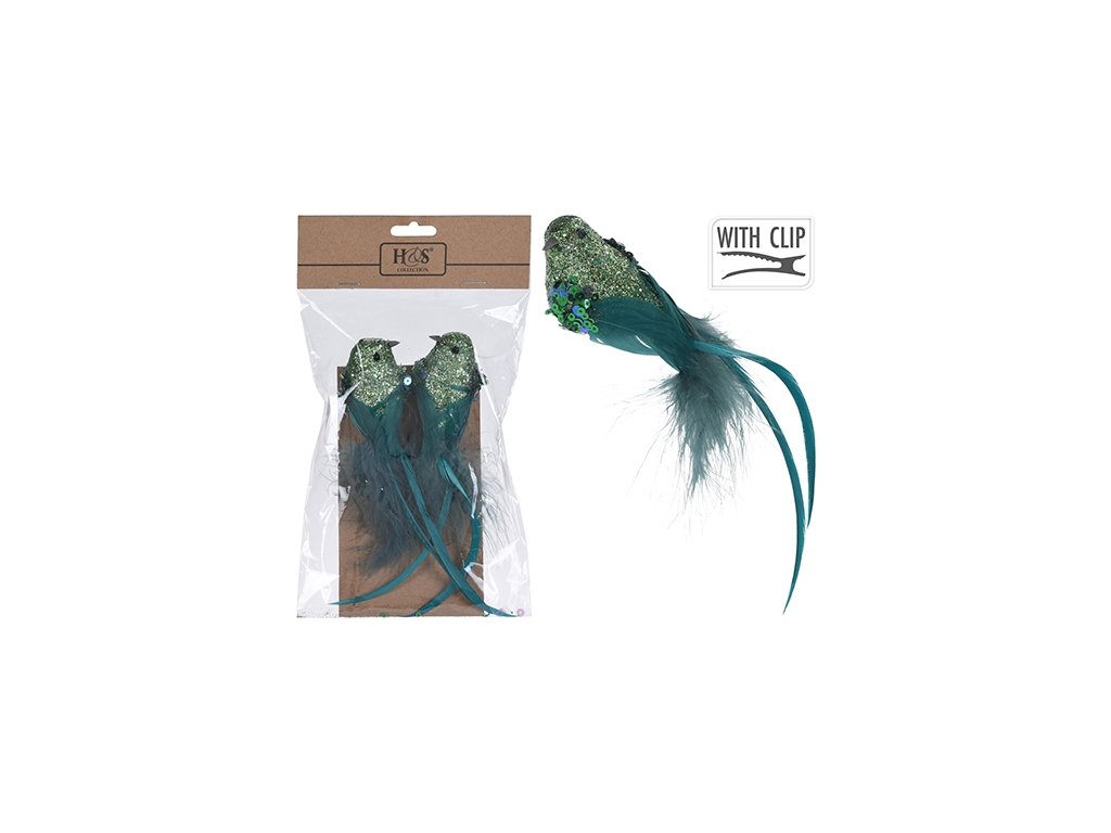 Vták na klipe 15cm/2ks zelená