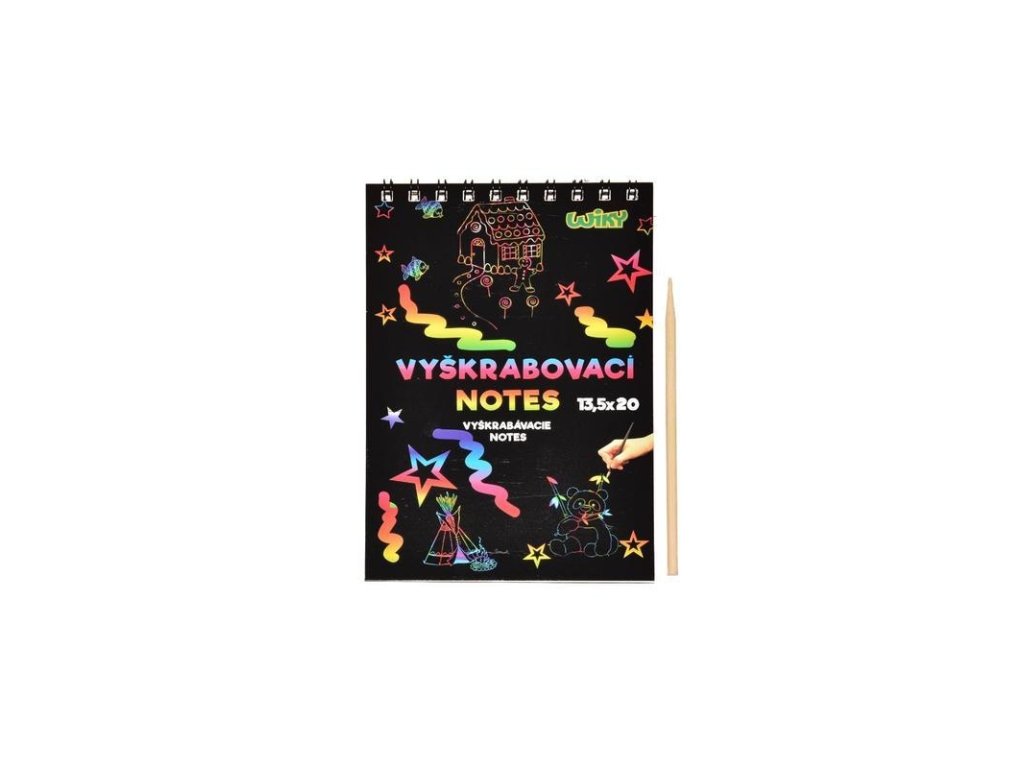 Kreatívne sa odviažte s vyškrabovacím notesom, ktorý má rozmery 13,5 x 20 cm. Na jednotlivých listoch, môžete pomocou vyškrabovacieho pera vytvárať rôzne pestrofarebné obrázky. Nevhodné pre deti do 3 rokov.Dodatočné parametre