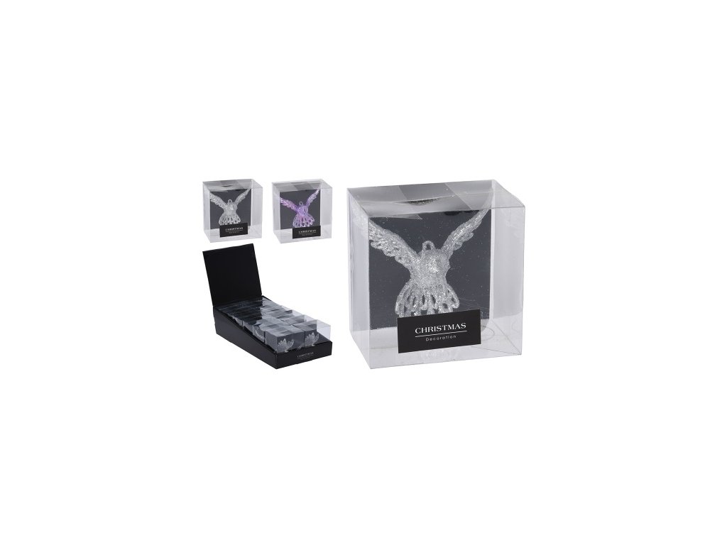 Závesná dekoračná ozdoba v podobe vtáčika v striebornej farbe so stuhou na povesenie. Materiál: polypropylén